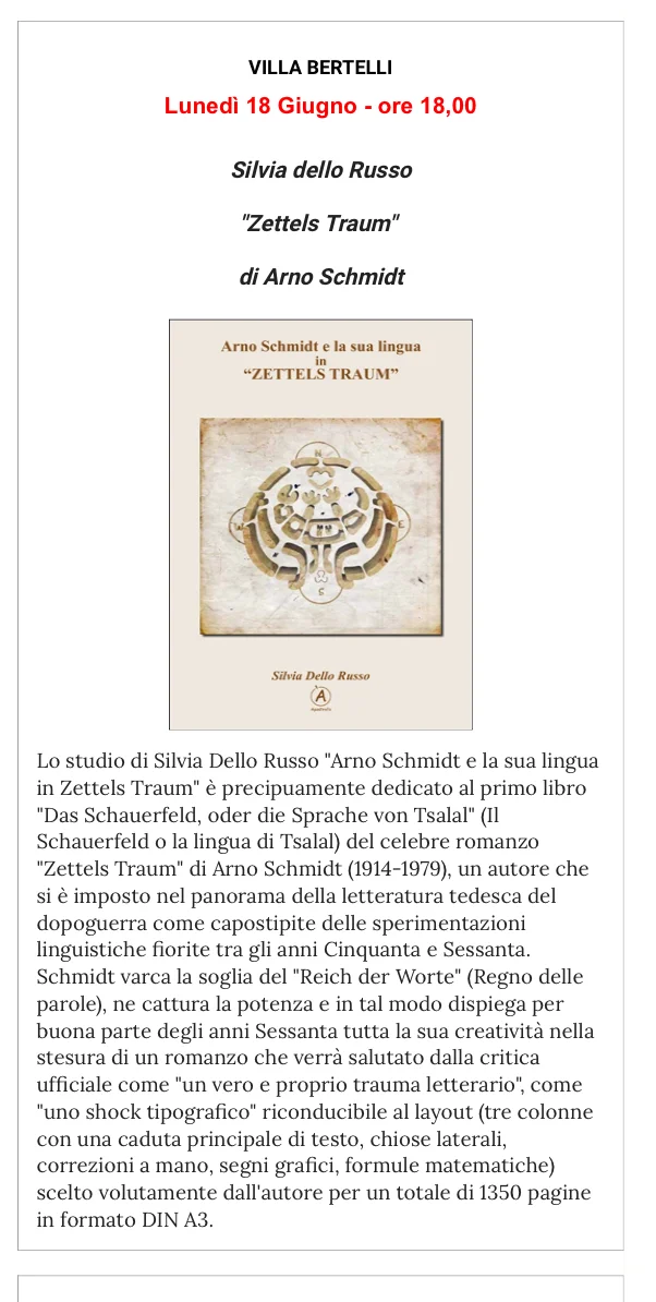 Silvia Dello Russo presenta il libro "Arno Schmidt e la sua lingua in Zettels Traum" Apostrofo Editore, Mondadoristore