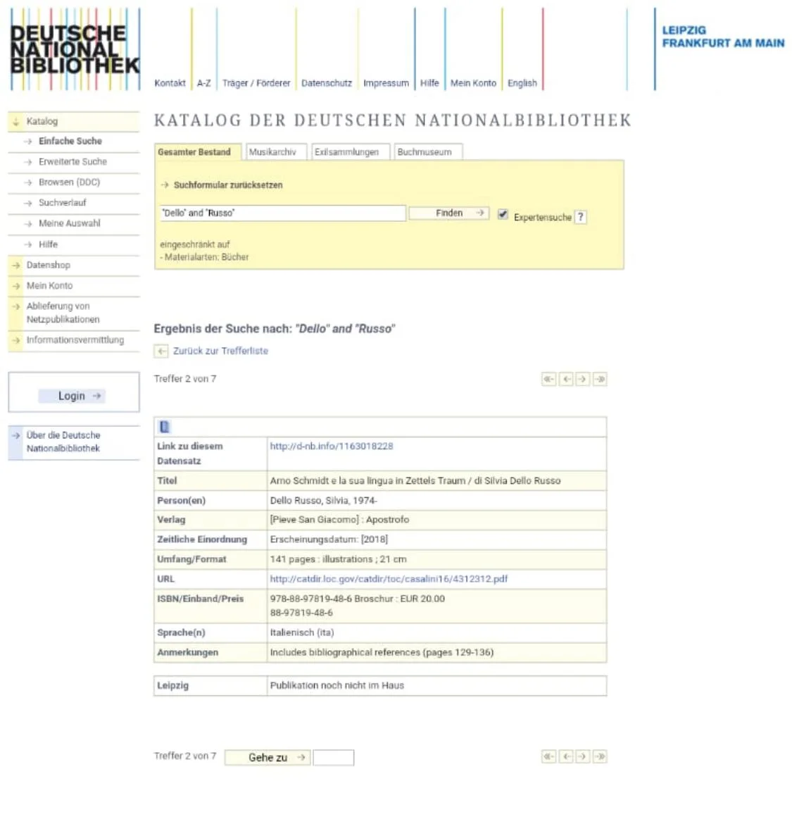Dal 25/2/2019 il libro è entrato perennemente negli archivi della prestigiosissima Deutsche National Bibliothek